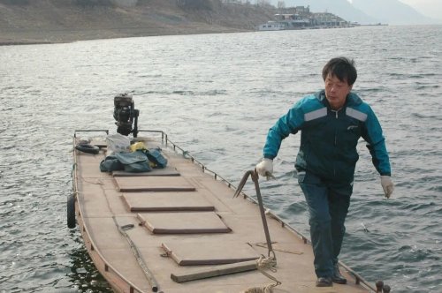 冬季,庫區湖面上的風冷得刺骨。郵船沒有專門的駕駛艙,在露天環境中行駛80公里,即使戴著手套,握操縱桿的手也凍得生疼。