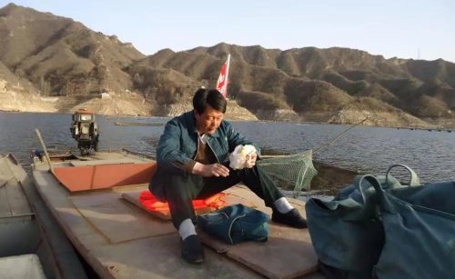 劉保朝在潘家口庫區駕駛船只運送包裹。本文配圖均由受訪者提供