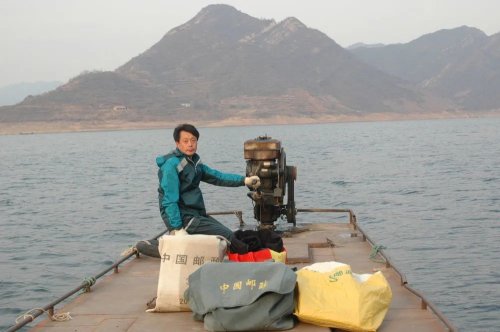 “這里既是庫區,又是山區。送快遞,談何容易?”劉保朝說。這條郵路幾乎半為高山半為水,獨石溝鄉的1000多居民散落在環庫區4萬畝水面周圍的大小溝岔中。有的山溝幾里長,只住一戶人家。每天送信,劉保朝既要騎自行車,又要駕船行一半水路,還得步行爬山。