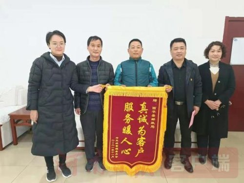 11月29日下午,西平縣老王坡管理委員會武裝部苗海民部長和辦公室劉琳主任將一面寫有“真誠為客戶,服務暖人心”的錦旗以及一封飽含深情的表揚信送到了西平縣郵政分公司,對西平郵政投遞員高祥同志三十年如一日,真誠服務投遞段道廣大客戶的事跡表達了由衷的贊揚,也真摯的感謝郵政公司培養(yǎng)出來的優(yōu)秀員工。