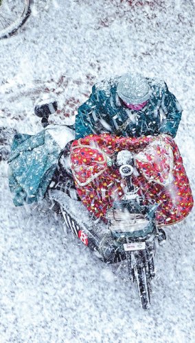中國郵政集團(tuán)有限公司天大郵電支局郵遞員冒雪為訂戶送報紙。馮平攝(人民視覺)
