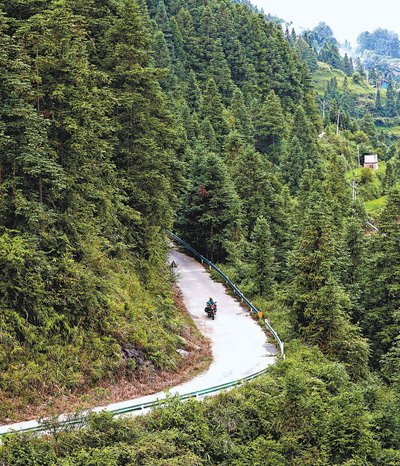 郵遞員張林昌行駛在貴州省錦屏縣河口鄉(xiāng)裕和村的公路上。楊曉海攝(影像中國)