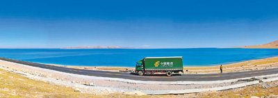 郵車從青藏高原色林錯湖畔駛過。旦巴扎西攝(人民視覺)
