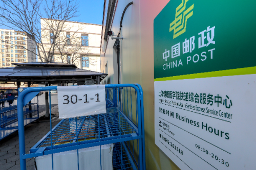 上海第一家郵政校園快遞驛站設在上海健康醫學院內 許雨周 攝(下同)
