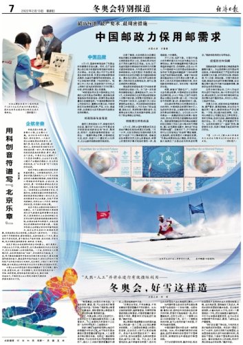在弘揚(yáng)優(yōu)秀傳統(tǒng)文化和奧林匹克文化的同時(shí),中國郵政在郵票印制中引入先進(jìn)的科技手段,以嶄新的形式呈現(xiàn)北京冬奧會(huì)的精彩魅力。以《北京2022年冬奧會(huì)——競(jìng)賽場(chǎng)館》紀(jì)念郵票小型張為例,首次應(yīng)用菲涅爾透鏡微納光刻技術(shù)。國家速滑館建設(shè)所用的剩余玻璃材料經(jīng)過特殊工藝加工成50微米的可用顆粒,摻入紅色雕刻油墨中,制作成“冰絲帶特種油墨”。在紫光燈下,方寸間的場(chǎng)館可以立即呈現(xiàn)出“冰絲帶”霓虹璀璨、光影流轉(zhuǎn),場(chǎng)館周圍燈火輝煌的夜景。“冬奧會(huì)郵票郵品設(shè)計(jì)精美,很受歡迎,極大地滿足了各國運(yùn)動(dòng)員和來賓的需求。”國家郵政局局長馬軍勝說。