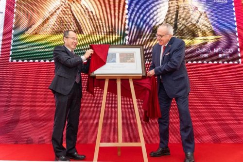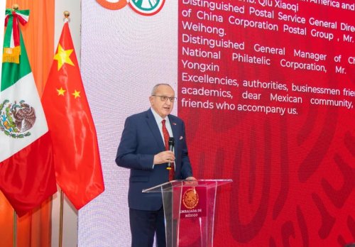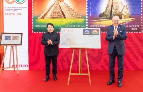 為慶祝中國(guó)與墨西哥建交五十周年,墨西哥駐中國(guó)大使館于2月14日舉辦了隆重的紀(jì)念儀式,并同時(shí)舉行該主題郵票首發(fā)式。墨西哥駐華大使施雅德、中國(guó)政府拉美事務(wù)特別代表邱小琪、中國(guó)郵政集團(tuán)有限公司相關(guān)負(fù)責(zé)人出席活動(dòng)。