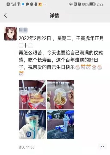 朋友圈里,他這樣記錄道:“2022.2.22在有愛的日子里,和抗疫一線的愛人并肩作戰,期待生機勃勃的蘇式生活早日歸來!”