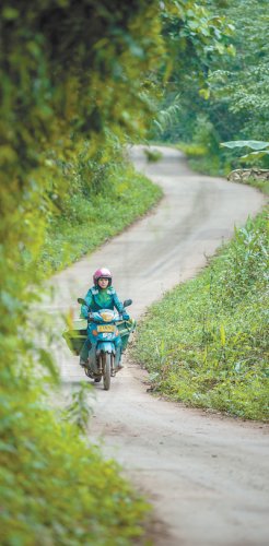 海南省白沙黎族自治縣南開鄉高峰村,符蓮香騎著摩托車行駛在曲折的山路上。袁琛攝(影像中國)