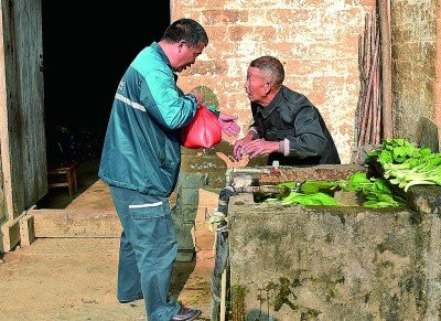 在安徽太湖縣北中鎮桐山村,郵遞員吳義陽將代購的糯米送到老人手中。 新華社發