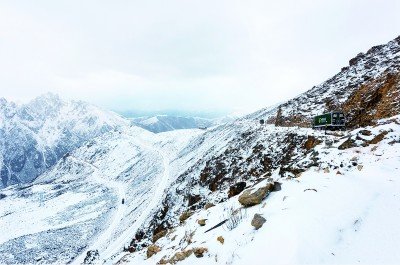 郵車行駛在四川甘孜州雪線郵路上。 新華社發