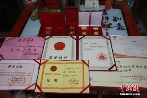 4月12日,張林昌展示所獲榮譽(yù)證書(shū)。勤懇的張林昌因工作出色獲獎(jiǎng)無(wú)數(shù),其中2010年獲得的“全國(guó)勞動(dòng)模范”稱號(hào)是他最為驕傲的。張林昌是貴州省錦屏縣郵政局啟蒙支局鄉(xiāng)村郵遞員,他一人在莽莽群山之間送信已堅(jiān)持了31年。31年里,靠著肩挑背扛,他累計(jì)將140多萬(wàn)件報(bào)刊信件送達(dá)深山的村民家中,步行里程已超過(guò)24萬(wàn)多公里。1987年,23歲的張林昌剛從部隊(duì)退伍返鄉(xiāng)就接過(guò)老郵員肩上的郵包干上了鄉(xiāng)村郵遞員工作,負(fù)責(zé)錦屏縣河口鄉(xiāng)片區(qū)的郵路。位于大山深處的郵路全長(zhǎng)90余公里,串聯(lián)著啟蒙鎮(zhèn)到河口鄉(xiāng)一帶2.5萬(wàn)余民眾。這期間,他每年365天除了春節(jié)和偶爾有事請(qǐng)假,幾乎從不缺席。按照規(guī)定,年近55歲的他可申請(qǐng)退休,但他卻堅(jiān)定地說(shuō)“只要我還能走,就會(huì)堅(jiān)持給鄉(xiāng)親們送郵件!” 中新社發(fā) 瞿宏倫 攝