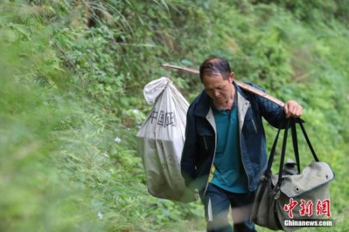 4月12日,張林昌在代辦點(diǎn)整理報(bào)刊,這是他每天的常規(guī)工作。張林昌是貴州省錦屏縣郵政局啟蒙支局鄉(xiāng)村郵遞員,他一人在莽莽群山之間送信已堅(jiān)持了31年。31年里,靠著肩挑背扛,他累計(jì)將140多萬(wàn)件報(bào)刊信件送達(dá)深山的村民家中,步行里程已超過(guò)24萬(wàn)多公里。1987年,23歲的張林昌剛從部隊(duì)退伍返鄉(xiāng)就接過(guò)老郵員肩上的郵包干上了鄉(xiāng)村郵遞員工作,負(fù)責(zé)錦屏縣河口鄉(xiāng)片區(qū)的郵路。位于大山深處的郵路全長(zhǎng)90余公里,串聯(lián)著啟蒙鎮(zhèn)到河口鄉(xiāng)一帶2.5萬(wàn)余民眾。這期間,他每年365天除了春節(jié)和偶爾有事請(qǐng)假,幾乎從不缺席。按照規(guī)定,年近55歲的他可申請(qǐng)退休,但他卻堅(jiān)定地說(shuō)“只要我還能走,就會(huì)堅(jiān)持給鄉(xiāng)親們送郵件!” 中新社發(fā) 瞿宏倫 攝