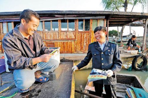 每次去投遞,唐真亞總會記錄下漁民們需要的生活用品,并買來給他們送到家門口。除了信件、報刊等,他船上往往還捎著給漁民們帶的東西:日用品、浮球、煤氣、米面……十分豐富。時間久了,漁民們就把存取錢、交話費的事也交給了他。唐真亞既當郵遞員,又當采購員、送貨員。為了抓緊時間投遞,給漁民朋友送東西,每次出門,他會給自己帶上些烙餅等食物。他的午飯和晚飯,經常靠這些在船上解決。“幫助別人讓我感覺心中很滿”。唐真亞說。