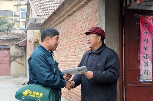 在訂戶眼中,張軍是個有名的“熱心腸”。在他負責的片區里,有一位早年喪偶的孤寡老人——邰連科,老人已經70余歲,靠低保和撿破爛為生,雖然他不是張軍的報刊訂戶,但是看到老人孤獨的身影,一種憐憫之心油然而生。于是他就成了老人的“義務志愿者”,每天路過老人家門口,他都要停下匆匆的腳步,看一看老人的生活狀況,還自掏腰包為老人買點水果,帶點米面。每次提起張軍,老人都感動地說:“我沒有兒子,上天卻為我帶來一位親人。”這件事,張軍已經做了2年,他用自己的愛心鋪就了一條特殊的郵路。