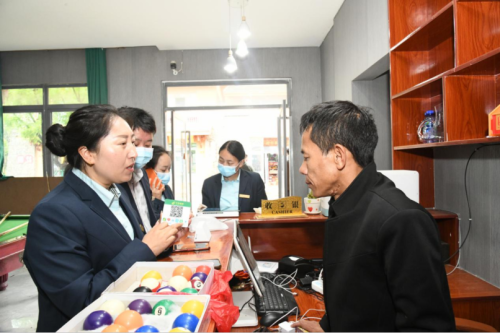 “當然可以,我們郵政不僅有收款二維碼,還有基金、理財、保險等業務……你還可以開通手機銀行,以后訂貨轉賬很方便,也不要手續費哦。”另一邊,土比妞牛的同事馬玉蘭、魯瑜熟練地為吉覺勒果辦理掃碼支付業務。