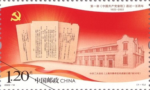 7月23日,《第一部<中國(guó)共產(chǎn)黨章程>通過一百周年》紀(jì)念郵票將發(fā)行。該套郵票一套1枚,全套面值為1.20元,計(jì)劃發(fā)行680萬套。