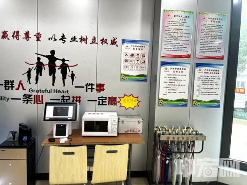 走進郵政支局“戶外勞動者驛站”,盡管地方不大,但桌椅、冰箱、空調、飲水機、微波爐、打印機、充電器、雨傘、針線包、應急藥箱......各種設施物品一應俱全。高大姐說,“驛站”里冬天有熱水,夏天有礦泉水,可以熱飯,可以充電,如果有時間,還可以看看報刊雜志,幾乎成了她和工友們的“第二個家”。“尤其是現在這么熱的天氣,郵政支局有時還會給我們準備冰棍、綠豆湯、西瓜等,消暑祛暑,很是貼心。”