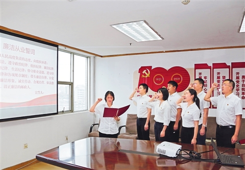 “我以對黨和人民高度負責的態度,向組織承諾……”近日,江西省郵政分公司各級黨組織紛紛結合崗位職責,對新入職黨員干部職工開展廉潔從業專題教育,組織廉潔從業宣誓,為黨員干部扣好廉潔從業的“第一粒扣子”。