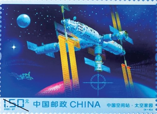 該套郵票4枚圖稿表現的內容分別為“天地往返”“空間科學”“出艙活動”“太空家園”。“天地往返”畫面以騰飛的長征五號B運載火箭為前景,背景展現了中國空間站建造過程中發射載人飛船、貨運飛船、核心艙等艙段使用的三型火箭,以及測控船、測控雷達、測控衛星返回艙等豐富內容。“空間科學”畫面以圖標形式展現了空間生命科學、微重力燃燒科學、微重力流體科學、空間天文與天體物理等不同的空間科學實驗類型。“出艙活動”畫面描繪了兩位中國航天員進入太空開展出艙活動,分別在機械臂上和艙壁上執行艙外作業任務的場景。“太空家園”畫面以環繞地球的中國空間站為主體,體現出建設航天強國、營造太空家園、探索未知宇宙的寓意,寄托著和平利用宇宙空間、開放共享造福人類的美好愿望。郵票采用多色膠印結合專色油墨、冷燙、全真彩等多種印刷技術,將其藝術之美以及科技感、氛圍感、趣味性于方寸間細微處精妙呈現。