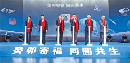 1月5日,《癸卯年》特種郵票首發(fā)儀式在國家大劇院隆重舉行。中國郵政集團有限公司黨組書記、董事長劉愛力,國家大劇院黨組書記、院長王寧,農(nóng)業(yè)農(nóng)村部總畜牧師張?zhí)熳舻瘸鱿瘍x式。集團公司副總經(jīng)理康寧、國家大劇院副院長宮吉成和中國美術(shù)家協(xié)會副主席魯曉波分別在儀式上致辭。郵票設(shè)計者黃永玉先生的代表榮寶齋雷振芳先生同劉愛力、王寧、張?zhí)熳簟Ⅳ敃圆ㄒ约爸袊倘绤f(xié)會副主席吳靜鈺共同為《癸卯年》特種郵票揭幕(見圖)。