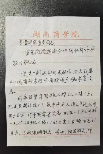 事發后老人再次虢術高,想給他送一個紅包,但被虢術高拒絕。老人不知該如何表達謝意,于是手寫了一份3頁紙的感謝信,還做出一個可愛的舉動:她找虢術高征訂了一年的瀟湘晨報——雖然家里已經訂了報刊。