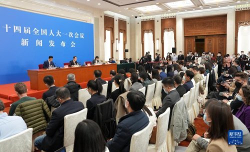 3月4日,十四屆全國人大一次會議在北京人民大會堂舉行新聞發布會。大會發言人王超就會議議程和人大有關工作回答中外記者提問。新華社記者 才揚 攝