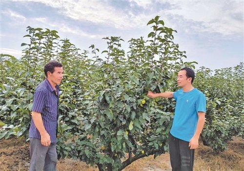丁丹偉(右)在了解果樹(shù)長(zhǎng)勢(shì)時(shí)與農(nóng)戶(hù)交談。