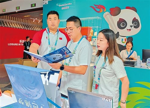 另一道亮麗的綠色風景線在郵政網點、專區服務點。成都郵政作為大運會郵品類特許生產商、大運會全品類特許零售商,在大運村、主媒體中心等重點區域精心打造了極具特色的郵政服務點位,選派郵務、金融、寄遞等專業精英組成志愿者服務團隊,提供全方位、高品質、面對面的寄遞、集郵、文創等郵政綜合服務,并在全市40個特許零售網點,開展紀念戳打卡、大運集郵展、迎大運沙龍、大運進校園等活動,激發市民參與熱情,為大運會營造濃烈氛圍。