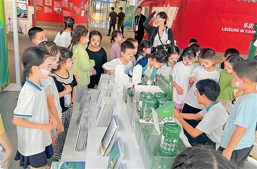 小朋友們對大運村郵政服務點位里的各式大運會郵品非常感興趣。