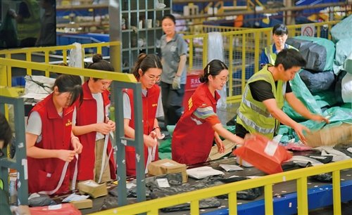 成都郵區中心組織19名青年員工深入基層一線,參與大運會郵件安檢工作。