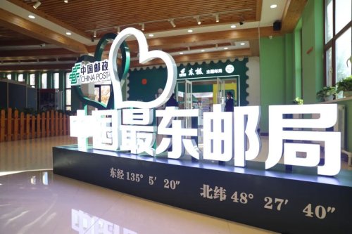 黑瞎子島位于我國(guó)最東端,是中國(guó)最早迎接太陽(yáng)的地方,被列為國(guó)家級(jí)自然保護(hù)區(qū)。“東極”主題郵局位于黑瞎子島熊園游客服務(wù)中心,占地面積約50平方米,設(shè)有政務(wù)圖書展示、封片主題產(chǎn)品展示、有聲明信片打印、特色集郵產(chǎn)品展示、地方性農(nóng)特產(chǎn)品展示等10余個(gè)功能區(qū),并以紫氣東來(lái)、東極寶塔、黑熊、地標(biāo)風(fēng)景為元素,設(shè)計(jì)了18 枚紀(jì)念戳和37張主題元素明信片,以及魚皮畫和魚皮制品等地方性特色產(chǎn)品,為廣大游客提供多樣化的選擇。在服務(wù)中心廣場(chǎng)還設(shè)置了主題郵局吉祥物小熊“東吉吉”的異開筒,身高 3.2米的“東吉吉”憨態(tài)可掬,吸引眾多旅客駐足拍照,成為了一處獨(dú)具特色的打卡點(diǎn)。