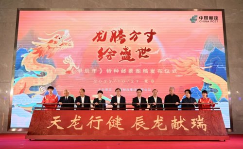 10月27日,中國郵政《甲辰年》特種郵票圖稿發布儀式在京舉行。國家郵政局副局長、中華全國集郵聯合會會長戴應軍,中央港澳工作辦公室巡視員許麗,中國郵政集團有限公司黨組書記、董事長劉愛力,黨組副書記、總經理鄭國雨,黨組成員、副總經理康寧,觀復博物館創辦人、著名文化學者馬未都,中國社科院榮譽學部委員、民俗學會名譽會長劉魁立,中國國家乒乓球隊運動員林高遠、于子洋、陳幸同、錢天一等出席活動。發布儀式上公布了《甲辰年》特種郵票圖稿并同步啟動郵票印制。