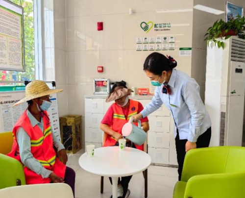 為切實(shí)履行社會(huì)責(zé)任,改善戶外勞動(dòng)者喝水難、休息難等問題,今年以來,郵儲(chǔ)銀行連云港市分行積極響應(yīng)全國總工會(huì)《金融行業(yè)開放共享服務(wù)資源 攜手關(guān)愛戶外勞動(dòng)者倡議書》號(hào)召,在總、省行統(tǒng)一部署下,依托轄內(nèi)營業(yè)網(wǎng)點(diǎn)扎實(shí)推進(jìn)“郵愛驛站”建設(shè),為交通警察、環(huán)衛(wèi)工人、建筑工人、快遞員等戶外勞動(dòng)者提供志愿服務(wù),讓“郵愛驛站”成為戶外勞動(dòng)者休憩的好去處。