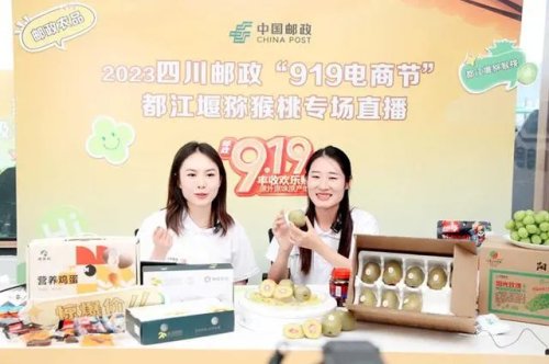錦江郵政直播間正在銷售農產品(成都市郵政分公司供圖 )