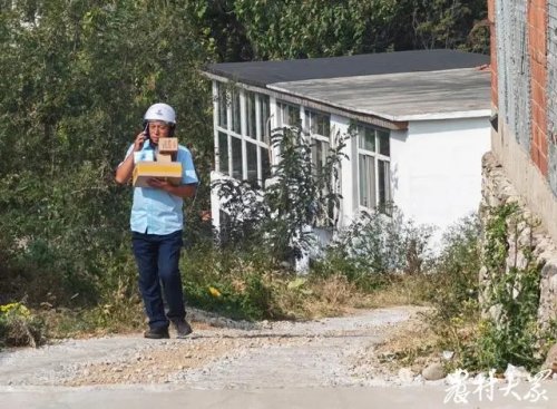 遇到上不去的小路,萬衛下車走路進行投遞。