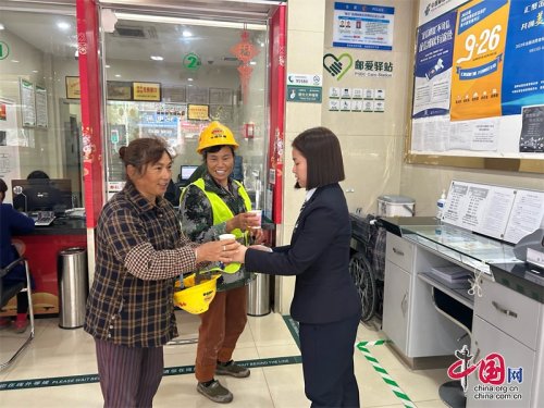 郵儲銀行工作人員為建筑工人送上熱水