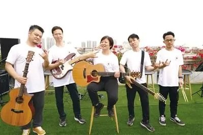 80后主音吉他手劉國輝在樂隊(duì)成立之初就加入了,那時(shí)的他還是一名投遞員。“讀大學(xué)時(shí)跟同學(xué)一起玩過吉他,畢業(yè)后大家奔赴各地就業(yè),再難聚在一起玩音樂,很遺憾!”劉國輝說,公司組建樂隊(duì),讓他找回了讀書時(shí)代的記憶,工余生活有了新的寄托。