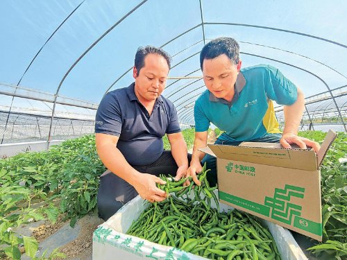為了讓育青合作社的辣椒更有品質,湘陰縣分公司協同郵儲銀行湘陰縣支行為馬育青提供貸款20萬元,用于改善大棚種植條件;在馬育青的合作社有了一定規模后,為了提升合作社的抗風險能力、助其實現可持續發展,湘陰縣分公司又逐步引導馬育青將銷售方式從線下批發轉型到線上電商銷售,并借助郵樂平臺幫其打通了電商銷售渠道;在寄遞支撐上,每到銷售旺季,湘陰縣分公司都會組織人員來到育青合作社和工人們一起采摘辣椒、打包裝車。從資金、銷售到寄遞,郵政為馬育青提供了“一站式”的服務。