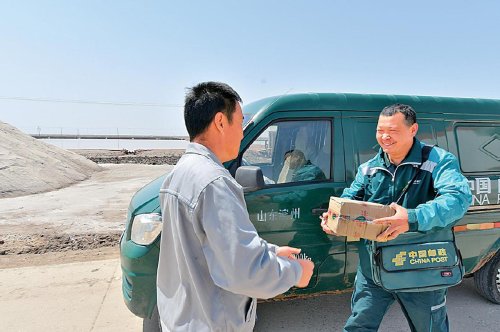 濱州位于山東北部,因?yàn)l臨渤海而得名。濱州市無(wú)棣縣北部沿海地區(qū)自古以鹽為業(yè),全縣40多萬(wàn)畝鹽田星羅棋布。這里的4個(gè)郵政網(wǎng)點(diǎn)、36個(gè)自提點(diǎn)、23個(gè)便民站,服務(wù)45個(gè)村、72家企事業(yè)單位,包括鹽場(chǎng)工人、漁民等共計(jì)12.2萬(wàn)人。