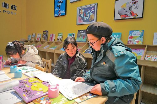 在“愛心書屋”,郵政工作人員陪伴孩子們度過充實(shí)、溫馨的寒假時(shí)光。 □冉七龍 攝