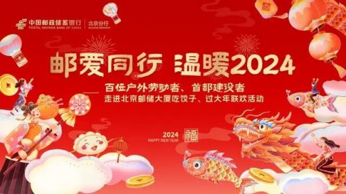 龍騰盛世春風起,福滿人間喜氣揚。郵儲銀行北京分行于龍年春節大年初一,舉行“郵愛同行 溫暖2024”新春大聯歡活動,邀請來自首都各行各業的百名戶外勞動者、首都建設者走進北京郵儲大廈一起吃餃子,過大年。