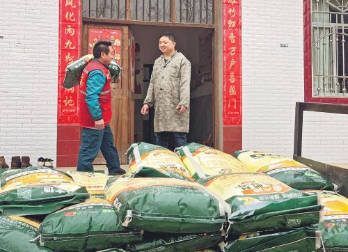 湖北省天門市郵政分公司黨委積極服務“三農(nóng)”發(fā)展,助力鄉(xiāng)村振興,成立黨員志愿服務隊為丘陵地區(qū)的果農(nóng)配送肥料,助推特色產(chǎn)業(yè)發(fā)展。圖為近日李場郵政支局黨員黃祥忠用手扶拖拉機將肥料配送到果農(nóng)家中。