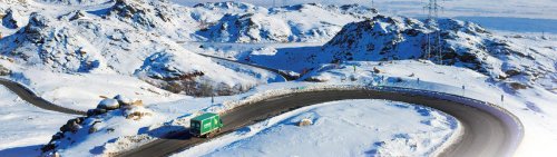 郵車行駛在前往禾木的盤山公路上。□張斌 攝
