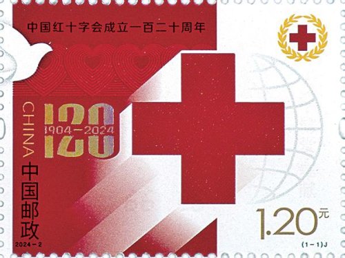 《中國紅十字會成立一百二十周年》紀念郵票圖案以紅十字為主體元素,結合環環相連的心形圖案與和平鴿等元素,陽光照射下的紅十字象征著“人道、博愛、奉獻”的紅十字精神熠熠生輝,體現了中國紅十字事業120年的輝煌發展歷程。