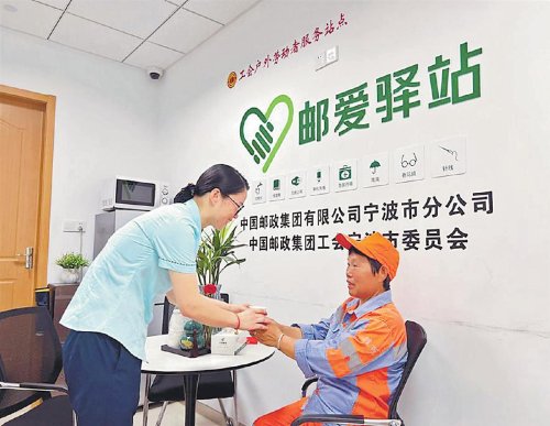 近年來,中國(guó)郵政堅(jiān)決貫徹落實(shí)習(xí)近平總書記重要指示批示精神,積極履行央企社會(huì)責(zé)任,主動(dòng)關(guān)心關(guān)愛新就業(yè)形態(tài)勞動(dòng)者。特別是2023年以來,中國(guó)郵政以深入開展學(xué)習(xí)貫徹習(xí)近平新時(shí)代中國(guó)特色社會(huì)主義思想主題教育為契機(jī),認(rèn)真學(xué)習(xí)、深刻領(lǐng)會(huì)中國(guó)工會(huì)十八大精神實(shí)質(zhì),全力落實(shí)全國(guó)總工會(huì)“雙15工程”各項(xiàng)工作部署,充分利用遍布全國(guó)、覆蓋城鄉(xiāng)的營(yíng)業(yè)網(wǎng)點(diǎn),與各級(jí)地方工會(huì)攜手共建戶外勞動(dòng)者公益服務(wù)平臺(tái)“郵愛驛站”,打通服務(wù)的“最后一公里”,為全社會(huì)戶外勞動(dòng)者切實(shí)解決“吃飯難、喝水難、休息難、如廁難”等急難愁盼問題。