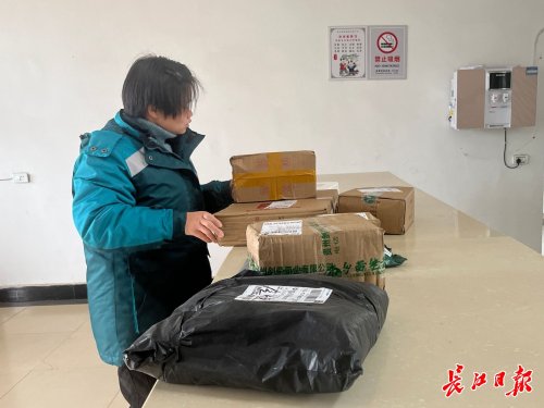 3月6日上午10時,長江日報記者乘坐黃芳蘭的面包車前往木蘭湖沿線派件。在七里沖村村郵站,老板彭四蘭見面包車停下,連忙上前幫著搬運郵件。完成入庫后,她跟黃芳蘭聊起一單狀態異常的郵件。兩人用黃陂方言溝通順暢,問題很快解決。