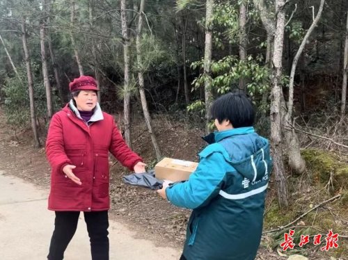 在當天派件途中,幾乎每到一個村都有村民邀請她吃飯。“剛剛也不是說的客套話,我在很多村民家里都吃過飯。”黃芳蘭說,椿樹崗有一對空巢老人——65歲的鄧玉環和68歲的胡云珍,他們的子女都在外工作,平日里老兩口相依為命。每次看到兩位老人,她都會想到自己遠在廣西的父母,因此對二人格外關照。