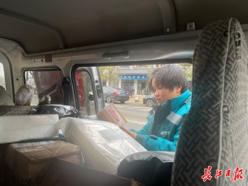 這樣的場景,在黃芳蘭的郵政車前幾乎每天都會上演。很難想象,眼前這位一頭短發、身材瘦小的女郵遞員,每天要負責武漢市最長一條山水郵路的投遞工作。