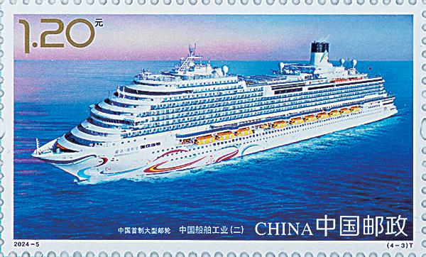 郵票從海洋防御、遠洋旅游、海洋運輸等方面橫向表現中國在船舶工業領域取得的輝煌成就。四艘船體實際建造規模相差甚大,為適應郵票畫面,在角度和方向上選取了能夠呼應和統一的船體。主體船只的背景采用風格相異的海洋風景加以襯托,使郵票的色彩清新而豐富。每艘船只在不同的海洋風景中更加凸顯各自的視覺特色。郵票采用高速輪轉膠印機印制,確保了郵票圖案的清晰度和色彩的豐富性。深藍色彩的運用在增強大海蔚藍色的同時,也使得整個畫面更加飽和生動,無色熒光的設計在紫外燈下為大海增添了浮光閃現的奇幻效果,高精度調頻膠印制版技術提升了印刷質量,使得圖案細節更加精細入微,展現出極高的專業水準和藝術美感。
