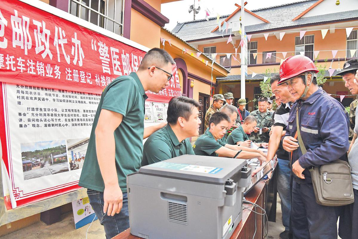 “摩托車是這里的主要交通工具,能在現場辦理的業務就現場辦理,不能現場辦理的,我們就利用郵政資源優勢,為村民遠程辦理好后郵寄到家。只要大家有需求,我們就不遺余力做好。”瀾滄縣分公司寄遞業務經理李松說,“從去年啟動至今,我們已經為抵邊村5000余名摩托車駕駛員提供了交管便民服務。”